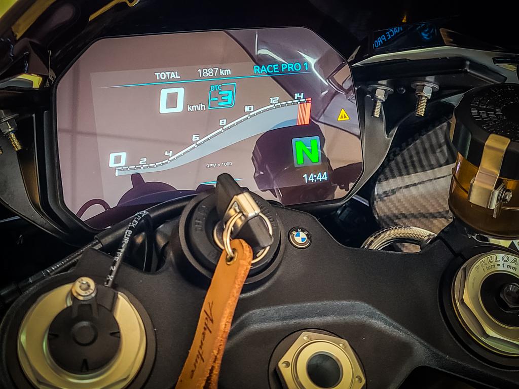 La BMW S 1000 RR full pack carbone totalisant 1800 kms.